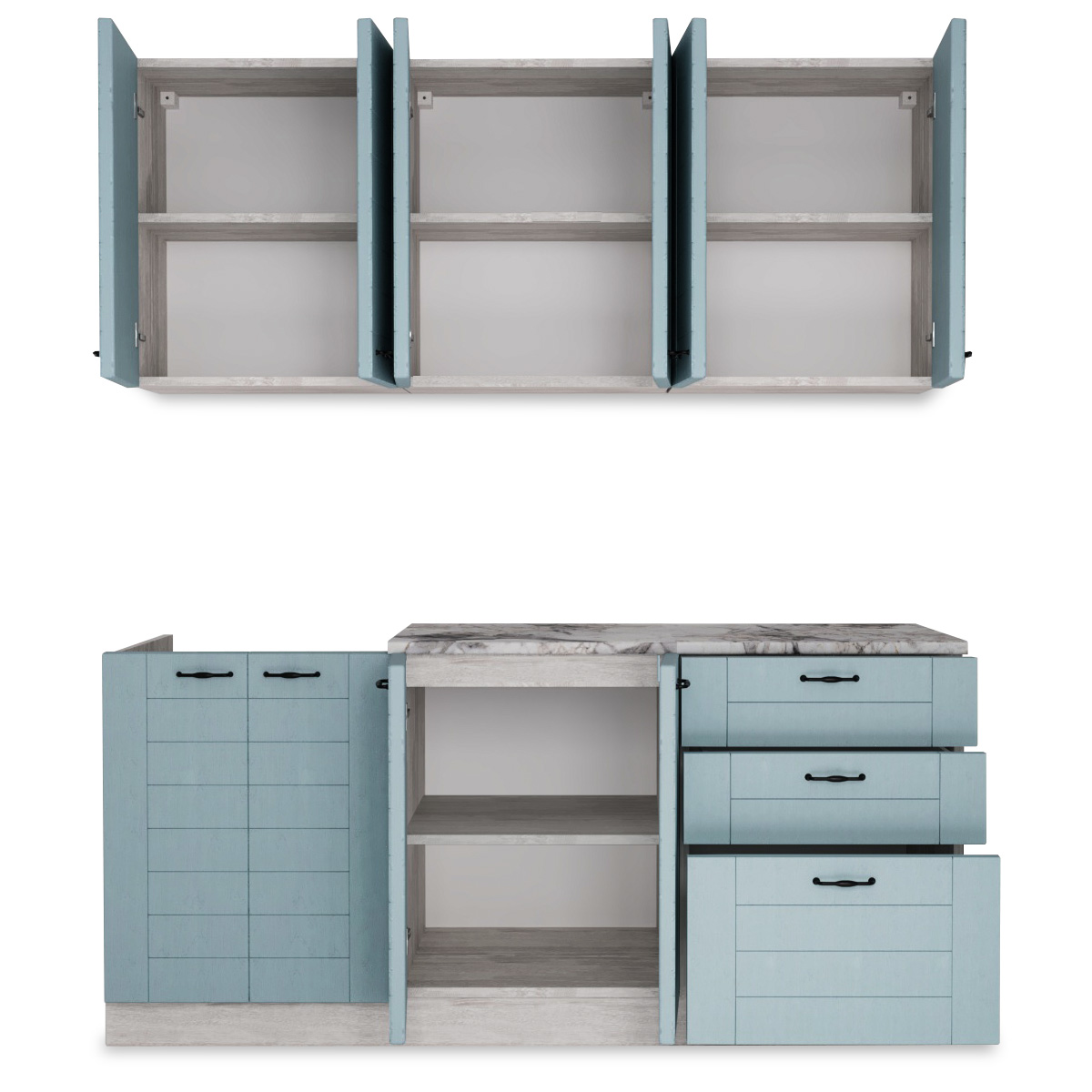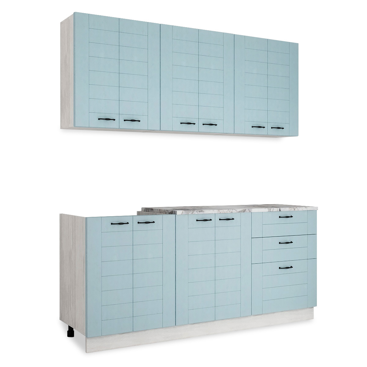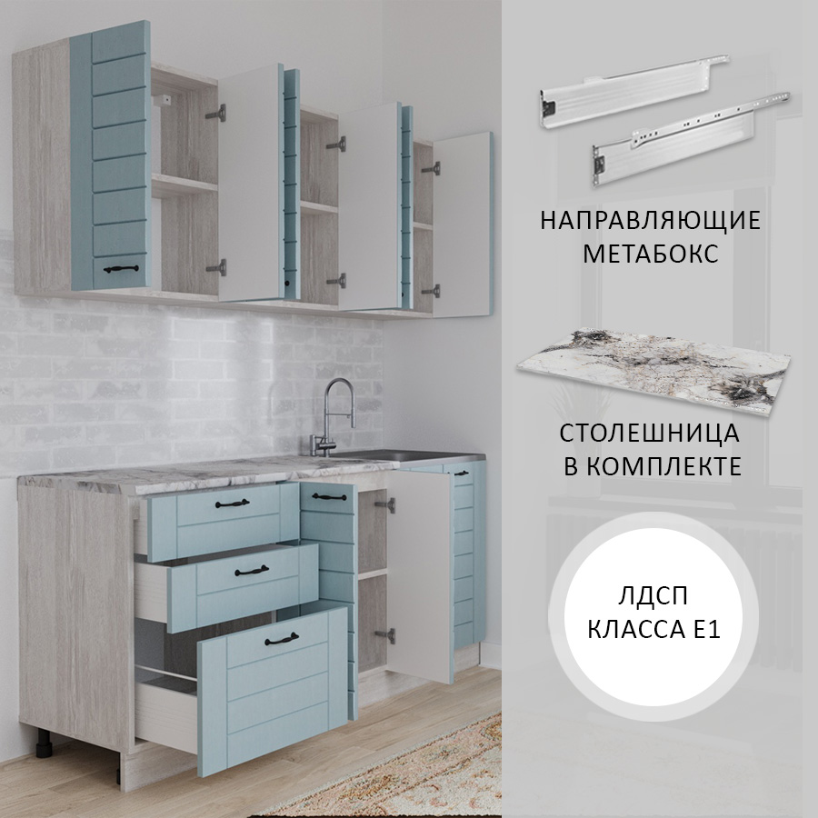 —Кухня СОНЕТ 1,8 м Сосна ЛОФТ / Дуб БИРЮЗА (столешница Альберика+Планка)