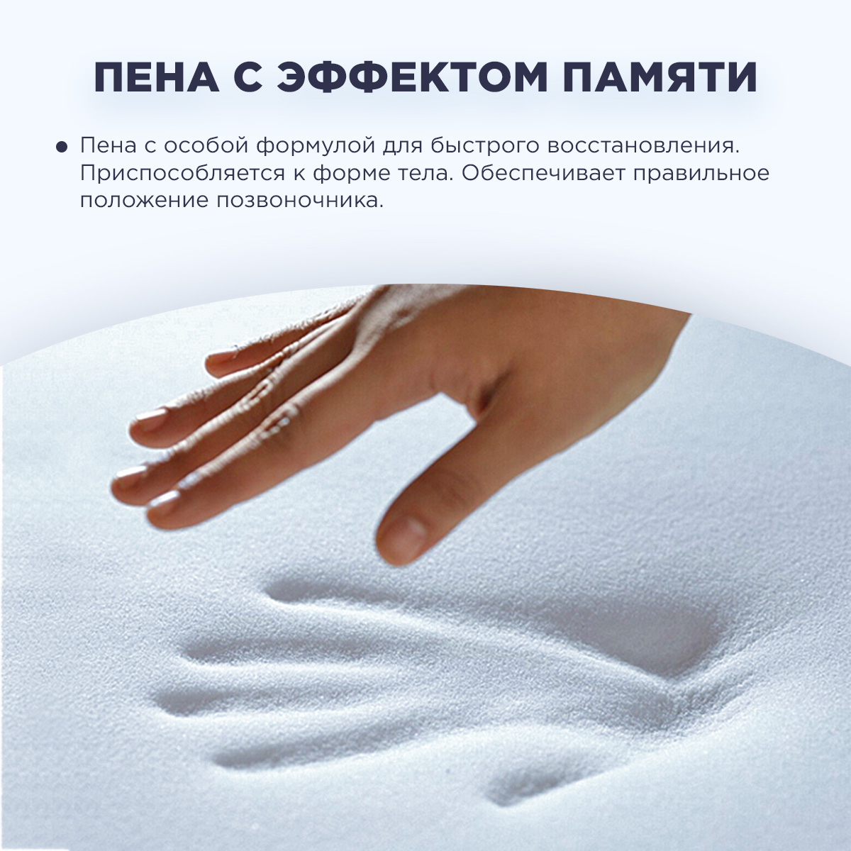 Материал чутко реагирует на тепло и давление, деликатно повторяя контуры тела для оптимального распределения нагрузки и снятия напряжения. Формула пены обеспечивает легкую смену позы и мгновенное восстановление формы, исключая ощущение «утопания».