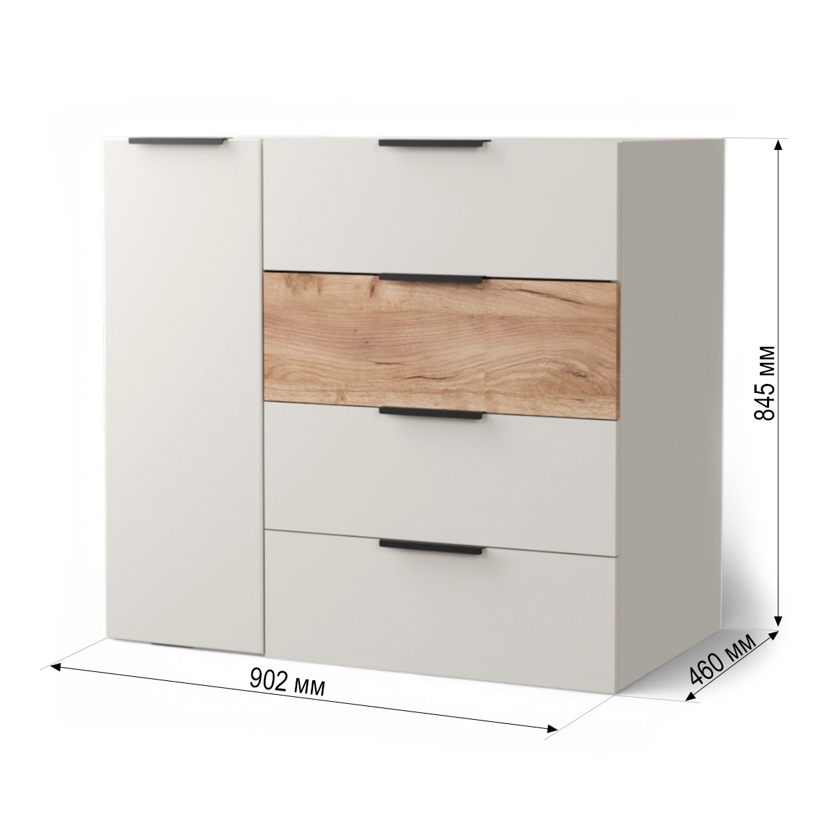 Комод Севиль 1дв.4ящ./ Кашемир/Дуб крафт